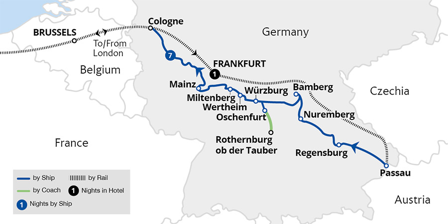 This nine-day river cruise featuring five-star dining and luxurious cabins, blends historical discovery with unparalleled onboard comfort. Experience Regensburg, visit Weltenburg Abbey, Bavaria's oldest Benedictine monastery and wander through the medieval streets of Rothenburg ob der Tauber. Sample fine wines in Würzburg's Baroque setting...