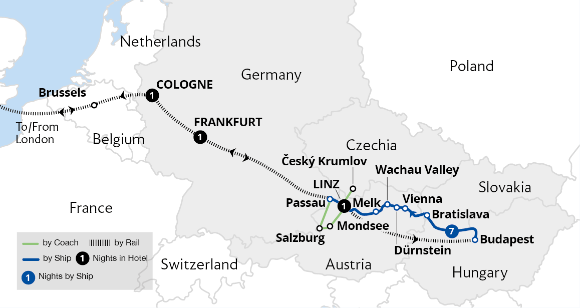 Travel through central Europe, visiting iconic landmarks from the time of vast empires. Uncover the timeless elegance of Vienna - the seat of the mighty Habsburg dynasty - and enjoy views of majestic palaces and grand, ornate buildings along the renowned Ringstrasse. Experience the medieval charm of the Czech capital, Prague, a magical...
