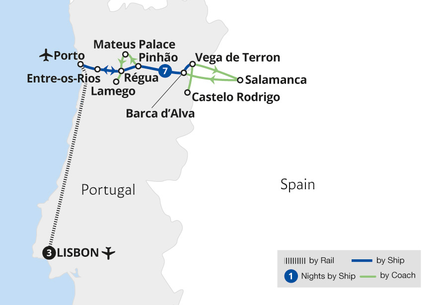 Along the way you might uncover the story of Portugal's famous fortified wine, take a pleasureable stroll through villages steeped in tradition, admire a range of magnificent historic architecture and sample some of the fresh and mouth-watering seafood for which Portugal is justly renowned.