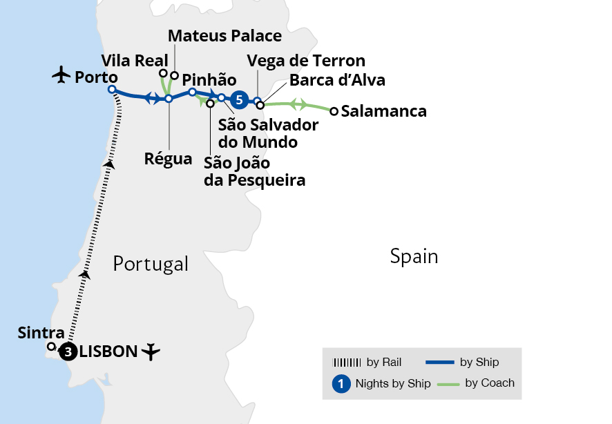 Fly to Lisbon and explore Sintra's palaces on a Portuguese voyage of discovery before embarking on a seven-night Douro cruise. Drifting through golden valleys and past enchanting towns and wine estates, our cruise reveals the best of this serene river, stopping at wonderful ports enroute. We set sail from Porto, tracing the Douro's path.