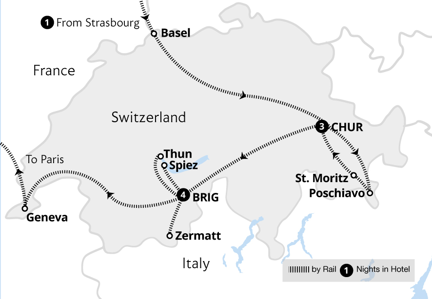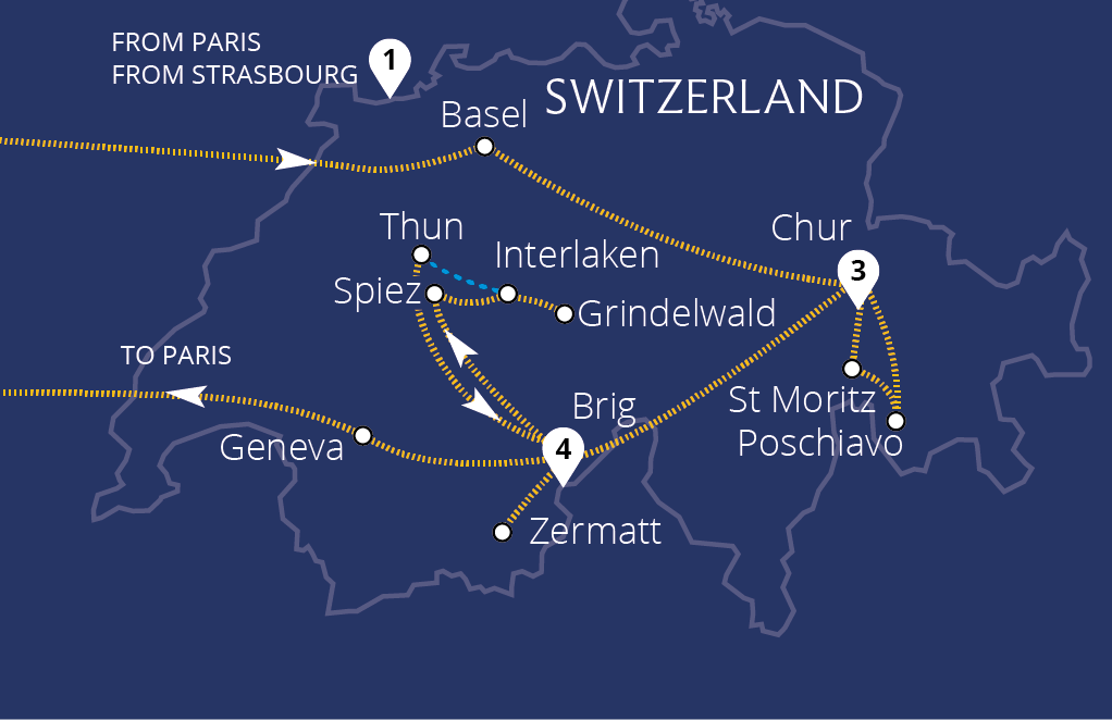 seamlessly connects Zermatt and St. Moritz, traversing the majestic
