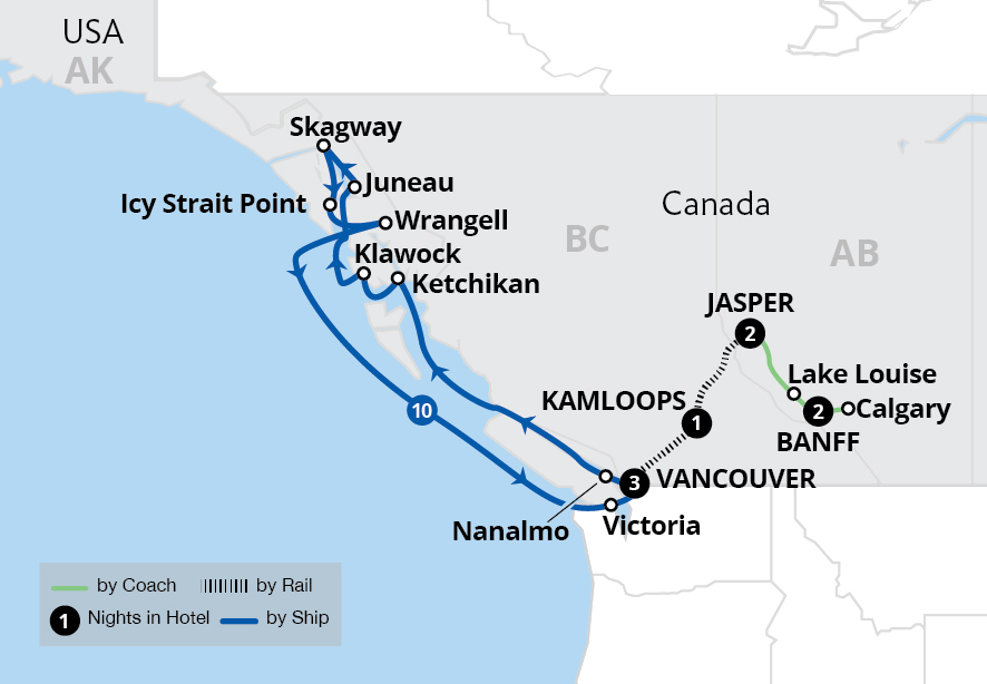 Experience the breathtaking beauty of Canada and Alaska on an unforgettable journey by land and sea. From the picturesque town of Banff, admire the beauty of Lake Louise and view the Athabasca Glacier before boarding the iconic Rocky Mountaineer, taking in breathtaking scenery on one of the world's most scenic railways as we journey to...