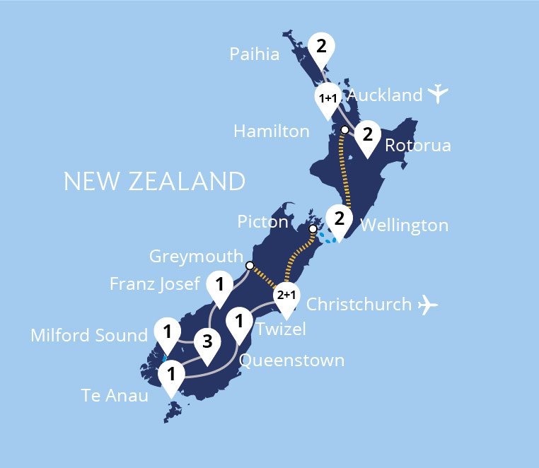 Discover New Zealand's dazzling cities, extraordinary national parks, spectacular mountains and breathtaking Fiordland on this epic tour of the North and South Islands. This fabulous tour combines the greatest features of this wonderful country in one holiday: superb railways, glorious landscapes and the warm and welcoming Māori culture.
