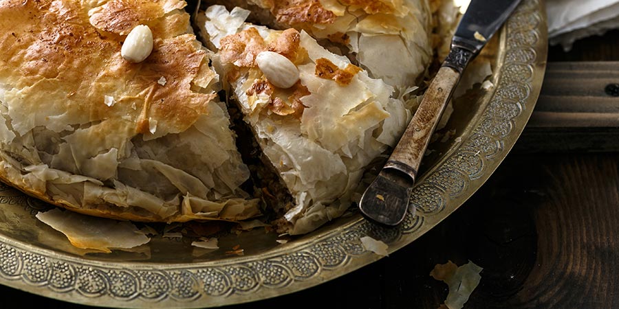 Bisteeya is then all wrapped up in a brittle pastry and served as