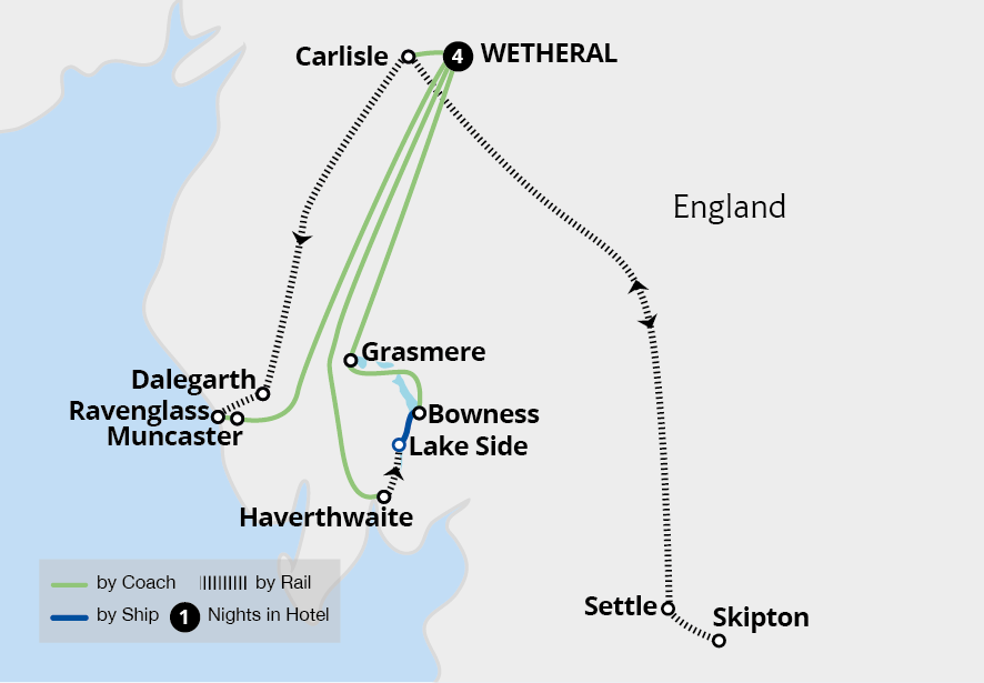 Windermere. As we travel, admire the passing lush green meadows,
